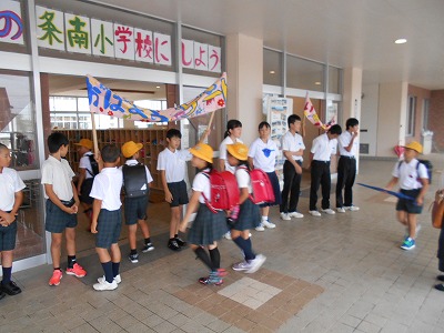 学校集会の後は,条南っ子集会。委員会も後期に入れ替わり,後期のメンバーで初の発表でした。11月は,園芸委員会と計画委員会の発表と今月の歌でした。
