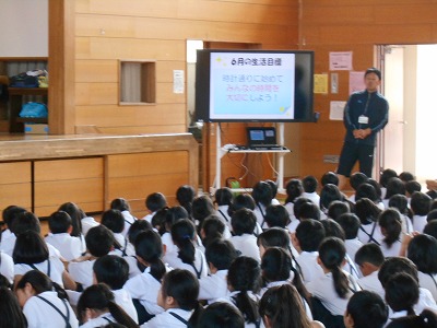 生徒指導の先生からは,11月の生活目標についてのお話でした。