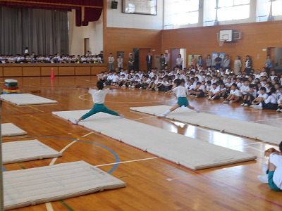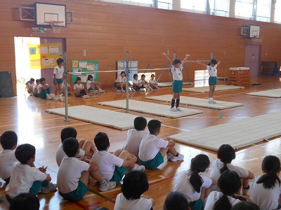ビシッと動きがそろい,ピンと指先まで伸びる姿は,さすが高学年。