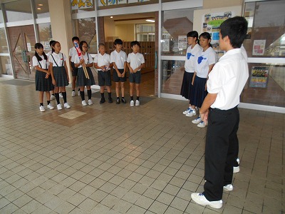 中学生に自分から元気にあいさつをしている様子が見られました。