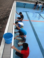 最初の活動は,「イワナつかみ」。元気のいいイワナを自分の手でつかむ楽しさを学びました。その後にそのイワナを・・・
