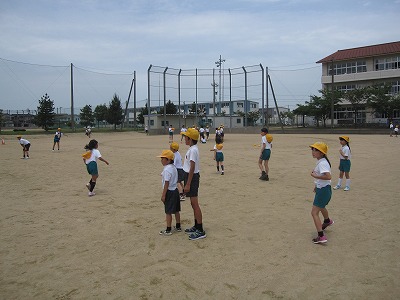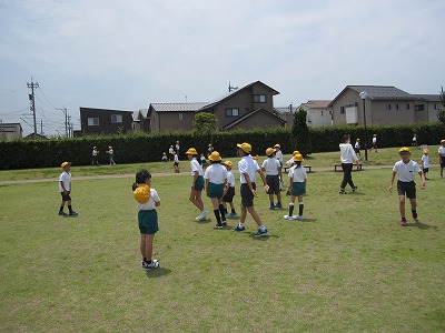 いざ出陣!!1つでも多くの帽子を取ろうと全力で運動場を駆け巡っていました。