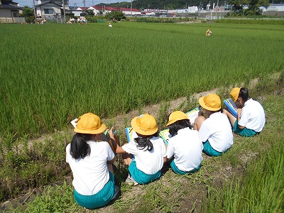5年生は,火曜日に総合の学習で「河北潟」を見学してきました。生き物調査隊と植物調査隊,農業体験隊に分かれて,河北潟にある施設を見学したり,体験をしたりしました。