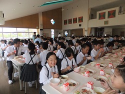 献立も津幡町で取れた材料をもとに考えられており,みんなでおいしく食べることができました。