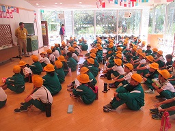 今日,長休みに避難訓練を行いました。今回は,中条南保育園の園児と合同でした。