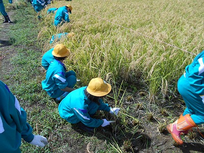 育った稲を見ながら一生懸命に稲刈りに励み,いい汗を流していました。