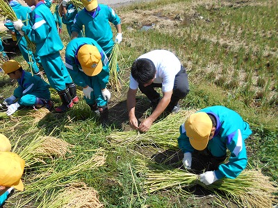田植えの時や今回の稲刈りの時に指導してくださった先生から教えていただき,貴重な体験となりました。