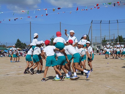 台風のため天候が不安定で、プログラムに変更がいくつかあったものの、最後まで一生懸命に競技や応援に取り組んでいました。