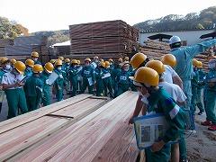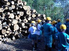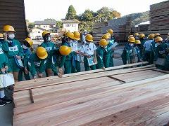 ↑杉の木の伐採を実際に見せていただきました。木が伐採され、木材となり、製材される過程を説明していただきました。60年以上かけて育った杉の木です。木は切られてからも呼吸しています。私たちの生活を潤してくれる木、今日の体験は大人になっても心に残っていることでしょう。石川県農林水産部の皆様、貴重な体験をさせていただき、ありがとうございました。見学をさせていただきました金沢森林組合宮野工場の皆様、お世話になり、ありがとうございました。