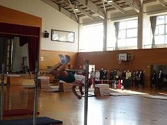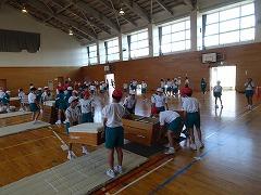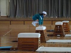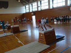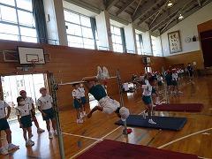 ↓4年生器械運動発表会を行いました。例年は津幡町の4年生が一堂に会して器械運動交歓会として行っていますが、今年は校内で発表会を行い、今日は保護者の皆様にも見ていただきました。本日にいたるまで応援をありがとうございました。子供たちは緊張しながらも練習の成果を堂々を発表していました。準備や後片付けの協力の姿にも感心しました。ご家庭でも子供たちのがんばりを誉めてあげていただけますようよろしくお願いします。