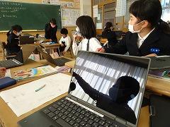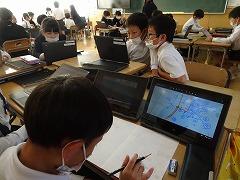 ↓3年生 理科 光の進む道を予想し、クロームブックに描いて交流しました。