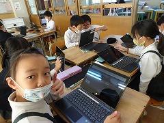 2年生 町探検した後のおすすめの場所をクロームブックを使って作成しています。
