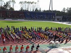 ↓9:00より開会式が行われました。今年は男子61チーム、女子58チームが予選会にエントリーして、本大会にはエントリー校全ての出場が認められました。