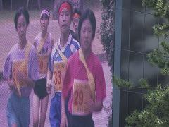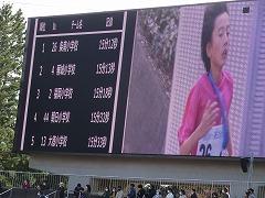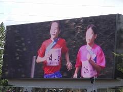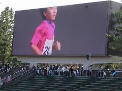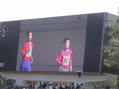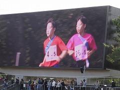 ↓第4走者にタスキが渡りました。力強い走りです。大型テレビに大きく映し出されています