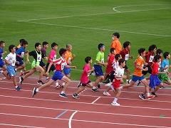 記録会男子スタート!条南小からは5年生が出場しました。ゼッケン26番が条南小です。