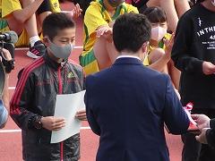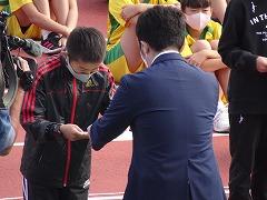 条南小学校の代表選手として今日にいたるまでたくさん練習をしてきましたし、駅伝練習だけではなく日頃の体力づくりの成果が今日の結果に結びついていると思います。日頃から応援していただいている家族の皆さんやお友達に感謝し、自己ベストを尽くして走りぬいたことを自信にして、これからの人生に生かしていってください。これまで励ましていただきましたご家族の皆様に心より感謝申し上げます。今日も応援ありがとうございました。