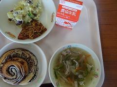 ↑金曜日はパン給食です。チョコクルクルパン、豚肉のきのこソース、スウィートポテトサラダ、コンソメジュリアンでした。きのこ、さつまいも、秋の味覚を楽しむことができました。