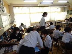 ↓1年生の英語活動です。ALTの先生の発音を聞いて身近な動物などを英語で学習しました。