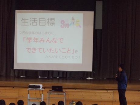 3月の生活目標は、次の学年に向けて「学年みんなでできていたいこと」を考えて取り組もうです。