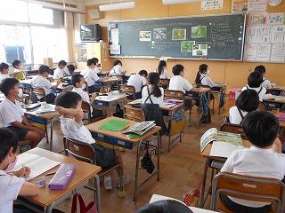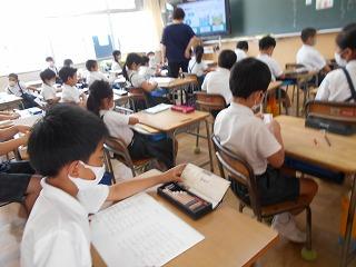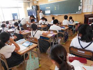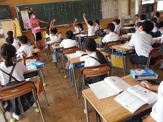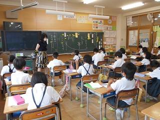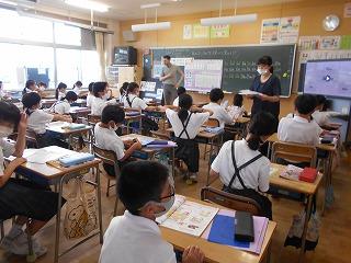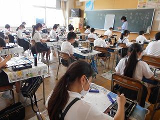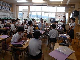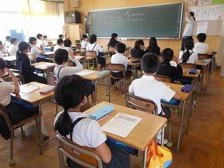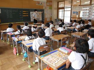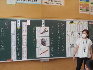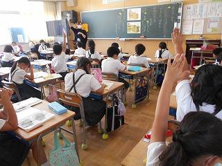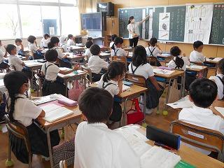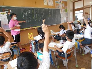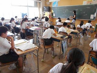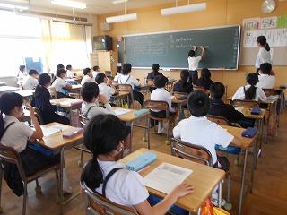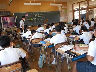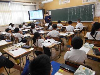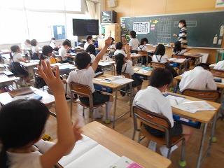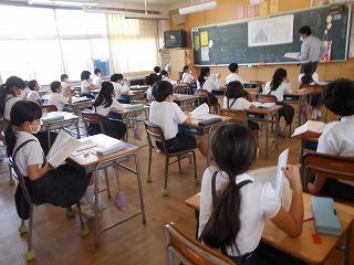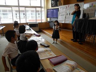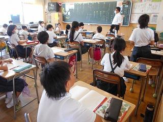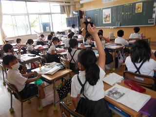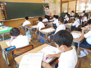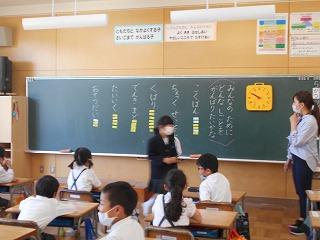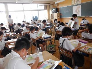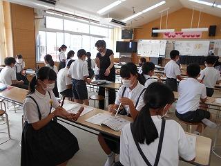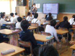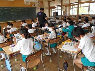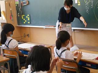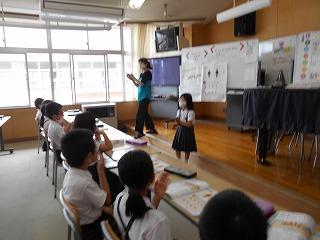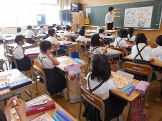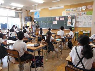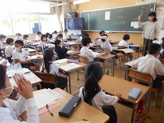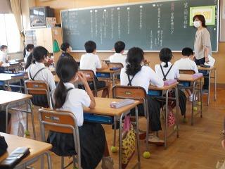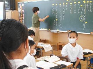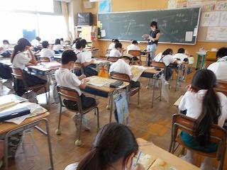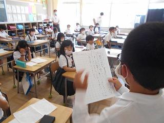 ↑5年2組の担任の先生と国語の言葉の学習です。漢語と和語、外来語の学習とそれらの言葉集めです。自分が集めた言葉を発表して聴き合いました。