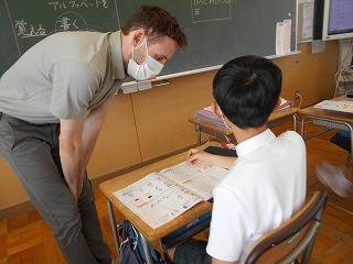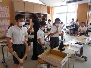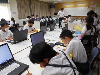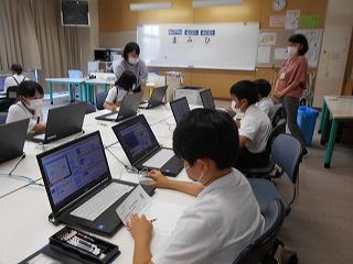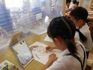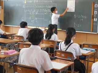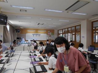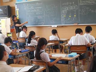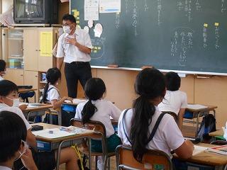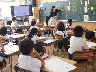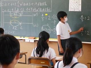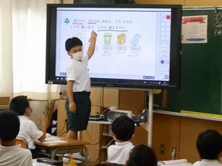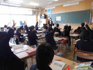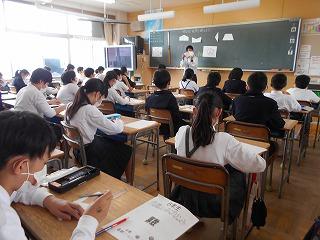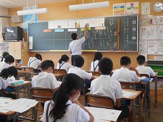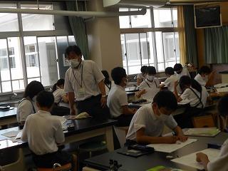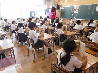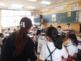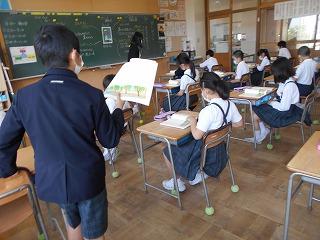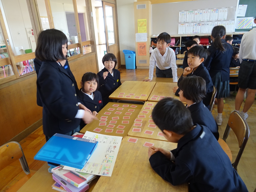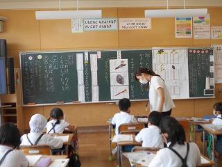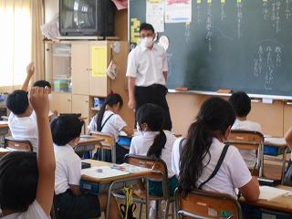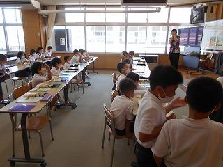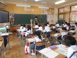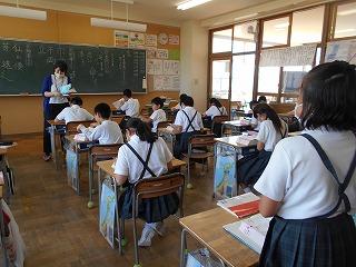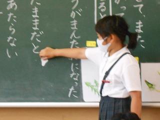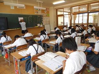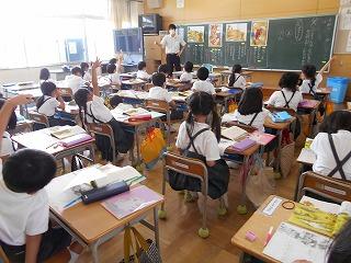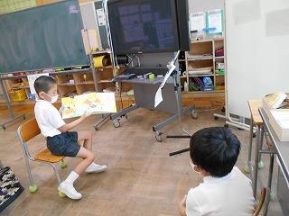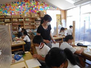 ↑5年2組の担任の先生と国語の言葉の学習です。漢語と和語、外来語の学習とそれらの言葉集めです。自分が集めた言葉を発表して聴き合いました。