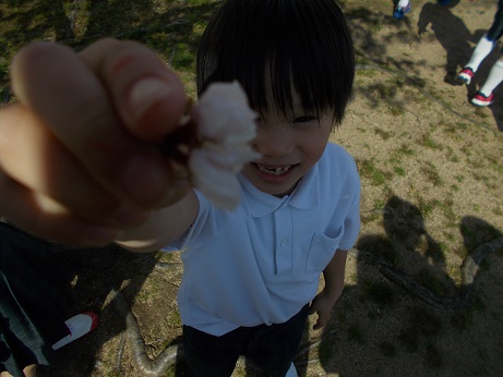 きれいな桜が咲いていたのを見た子ども達はいつも以上に元気いっぱい!!