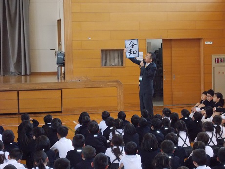 5月の学校集会は、地域の方やボランティアの方との対面式を行いました。