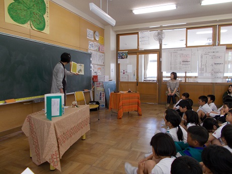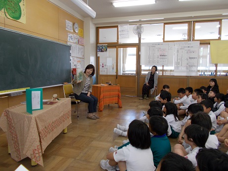 2限目、金のがちょうさんによる読み聞かせがありました。