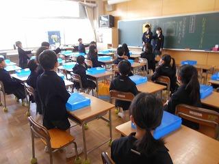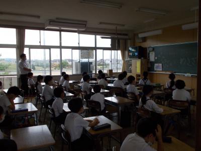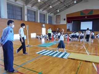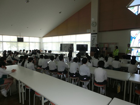 2・3時間目に交通安全教室が開かれました。警察の方から話を聞いて、ビデオを見た後に、グループに分かれて学校の周辺を実際に歩行しました。