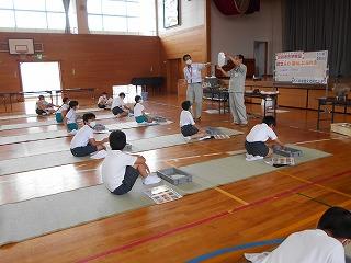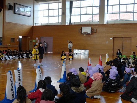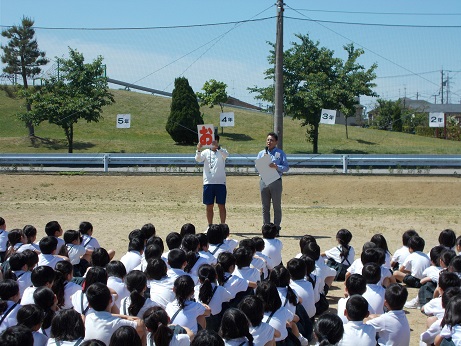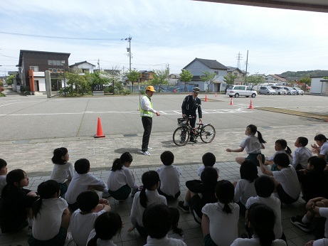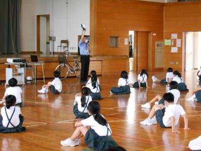 当日は津幡町の警察官の方が1名、津幡町の役場の方から2名を外部講師として、安全に自転車に乗るにはどうすればいいかを教えていただきました。