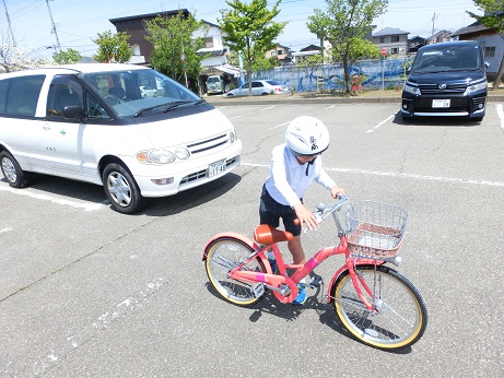 コースを走ったのは一人1回でしたが、安全に自転車に乗るための走り方をたくさん学習することが出来ました。自分で自転車に乗るときも、「安全に」「楽しく」乗れるといいですね!