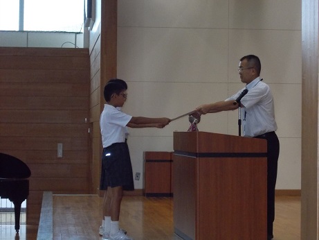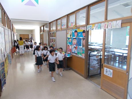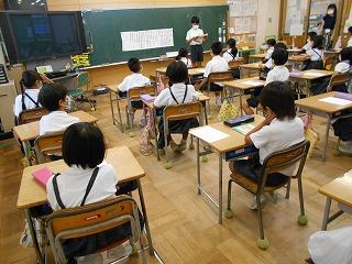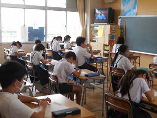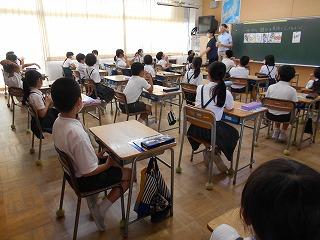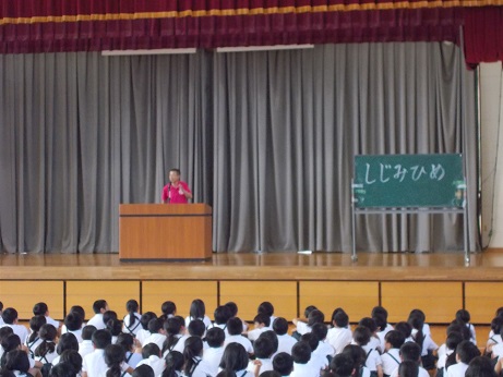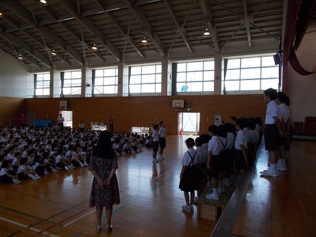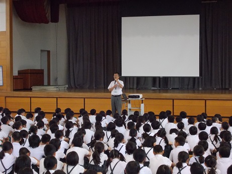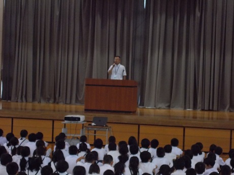 7月の全校集会を校内放送で行いました。学校中しーんとなって、教室でしっかりとお話を聴いていました。