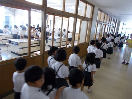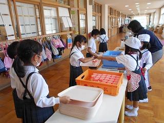 今のところ、今年度の授業参観はまだ行うことができていませんので、保護者の皆様は、HPで「ちょこっと授業参観」してください。担任の先生や担任以外の先生も知っていただけたらと思います。毎日の授業のほんの一部ですが、ご覧いただけたらと思います。また、試食会も実施が困難な状況です。HPに毎日の給食を載せていますので、どうぞご覧ください。