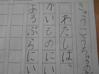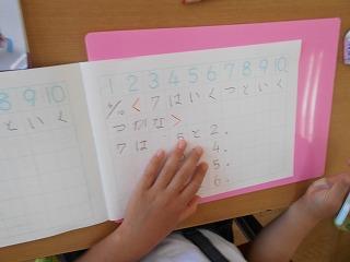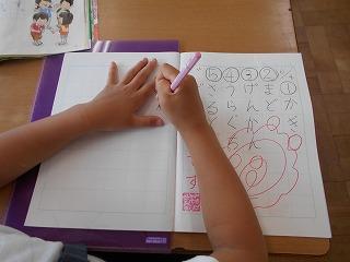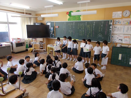 ↑ 1年国語 あいうえおの言葉をよい姿勢とはっきりした発音で読み上げました。毎日の繰り返しで、大きな力となって蓄えられていきます。1年生の成長は早いですね。