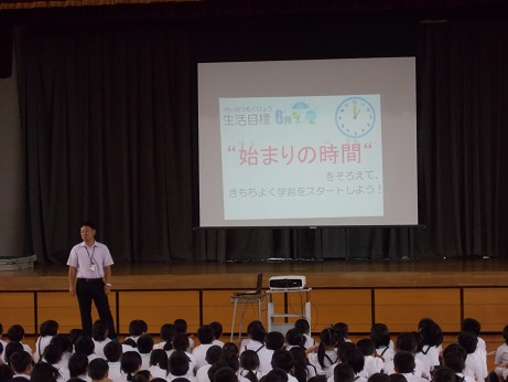 6月の生活目標「始まりの時間をそろえて、気持ちよく学習をスタートしよう!」