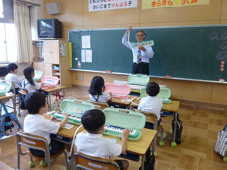 ↑1の2音楽 リズムに合わせて演奏できるかな カスタネットで「はく」を感じ取る学習です。音楽に合わせてカスタネットを打つと、不思議と、わくわく、楽しい気持ちになりましたね。「しろくまのジェンカ」を演奏しました。