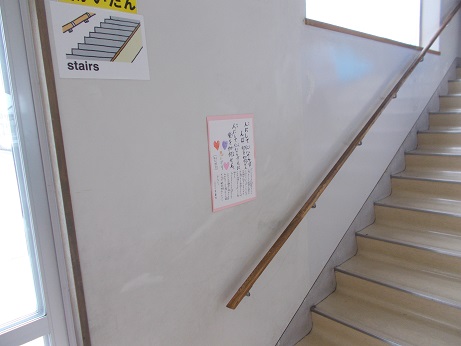 「思いやりの心が、右がわろう下歩行 で見える、条南小学校にしよう」