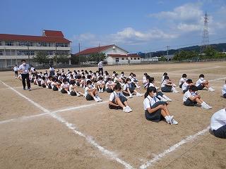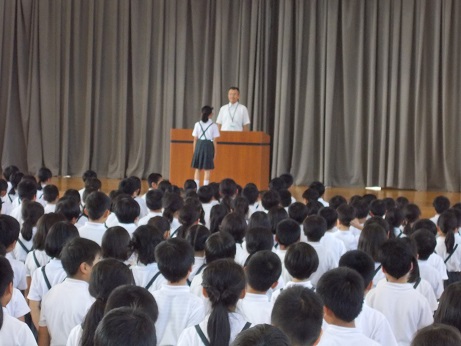 校長先生のお話で、「今何をすべきか」考えて行動できるように頑張りましょう。