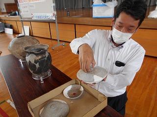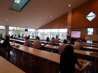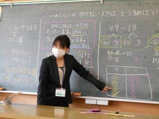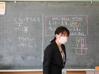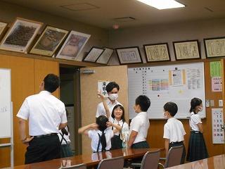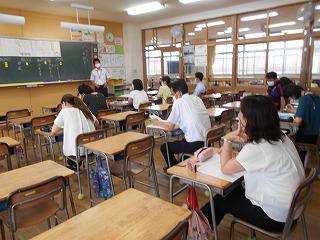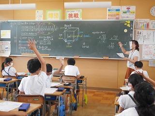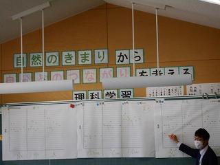 ↑業後は、先生たちも勉強です。模擬授業といって、先生たちが子ども役になり、分かりやすい授業を研究しています。今日は6年1組の先生の授業を先生たちでアドバイスし合い、勉強しました。先生たちも日々授業力を磨き合っています。