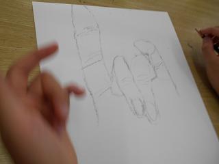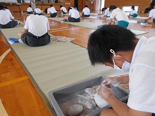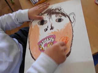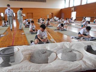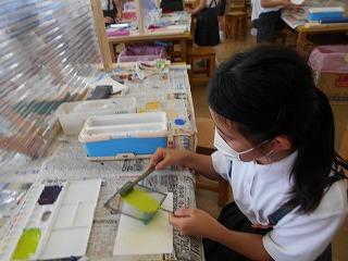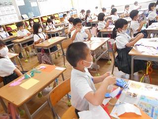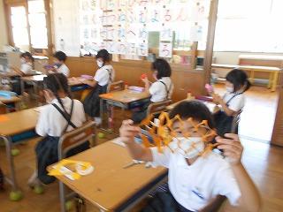 ↑2年1組 図画工作です「光のプレゼント」の仕上げと、「にぎにぎ粘土」です。粘土は、握った形から、つまみ出して、新しい形を生み出しました。何ができたかな?
