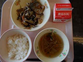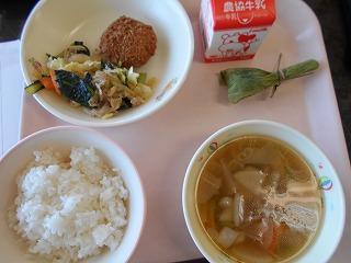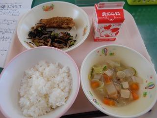 ↓ 今日の給食です。6月29日は「佃煮の日」だそうです。佃煮の「のり」が付いていました。