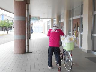 障害物がある場合も自転車から降りて安全に進みます。