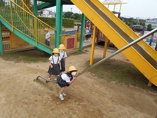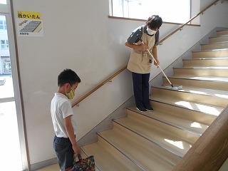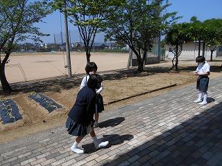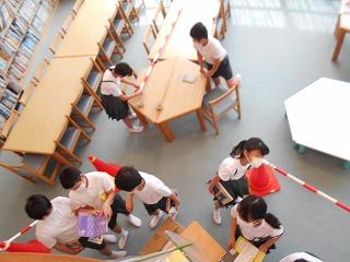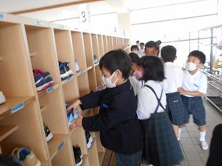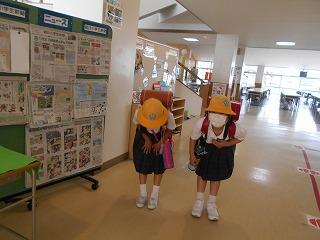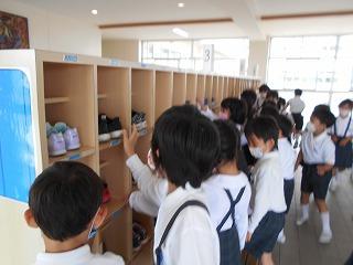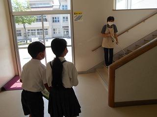 条南小学校のお兄さんお姉さんとして学校のことを教えながら探検しました。