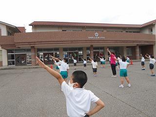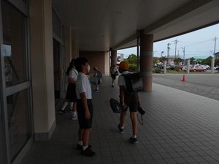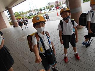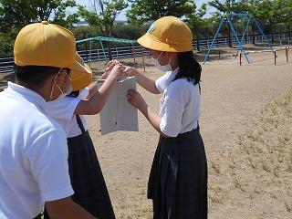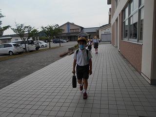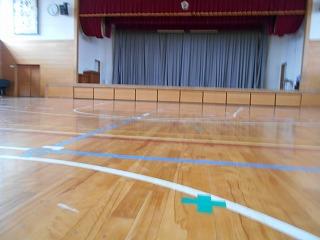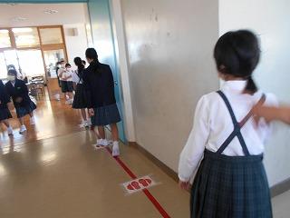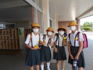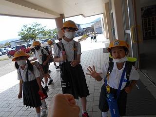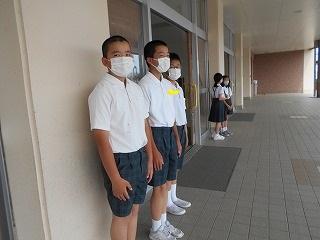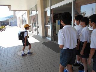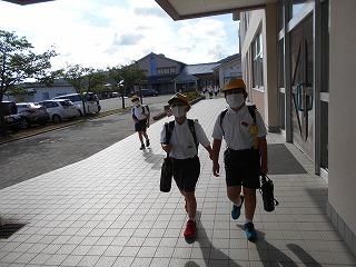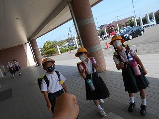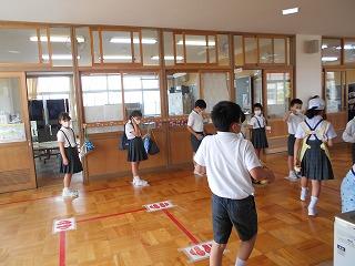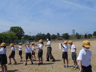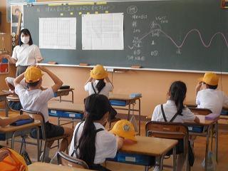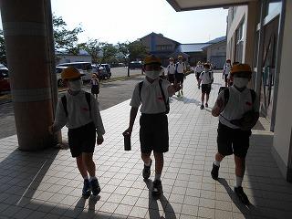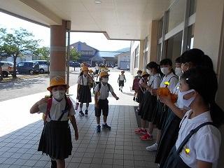 ↑ 6年生の避難訓練です。ソーシャルディスタンスを確保しての避難訓練です。さすが6年生、話の聞き方も態度もきびきびしていました。