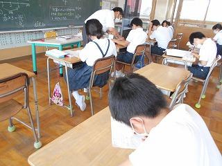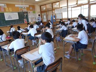 ↑5年生は、津幡町の学力調査を実施しました。これまでどれくらい力が付いているか見るためのテストです。この結果を分析して、学校の強みとさらに力を入れて指導していくことを明らかにします。分かる、できることはうれしいことです。将来自分の夢をかなえるために、精一杯力をつけていきたいと思います。