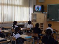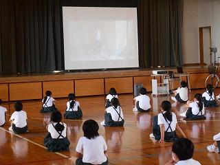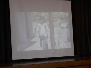 警察の方から、自転車に乗るときに気を付けなければいけないことを教えていただき、DVDを使った教材を観ました。