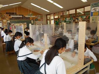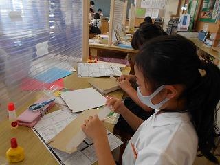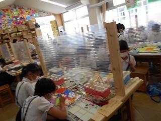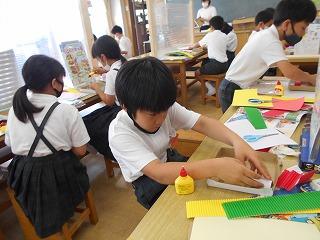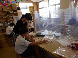↓ 5年1組図画工作 「糸のこすいすい」パズルづくりです。担任とではなく、級外の先生と図画工作を学んでいます。英語が専門の先生です。教育相談の先生でもあります。子供たちは、糸のこミシンで曲線も上手に切り取っていました。作業が丁寧です。