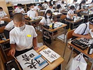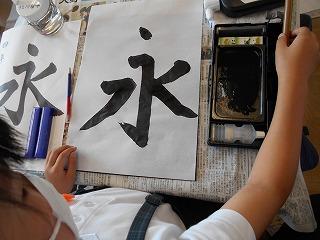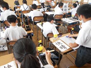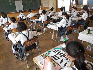 ↑6年2組 習字 点かくのつながりを意識して、力強く書きました。