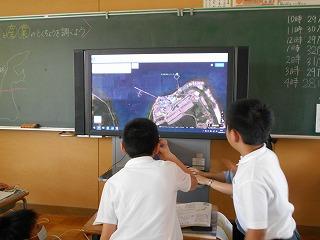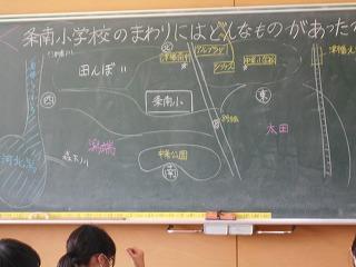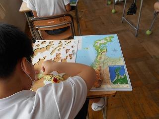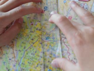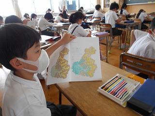 ↓3年社会 津幡の公共施設はどんなところにあるか、地図を見て話し合いました。