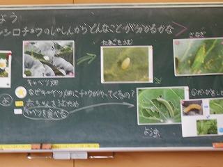 ↑ 3年理科 モンシロチョウとバッタやトンボの成長の仕方を比べました。すると、昆虫の中には「さなぎ」になるものとならないものがあることに気づきました。